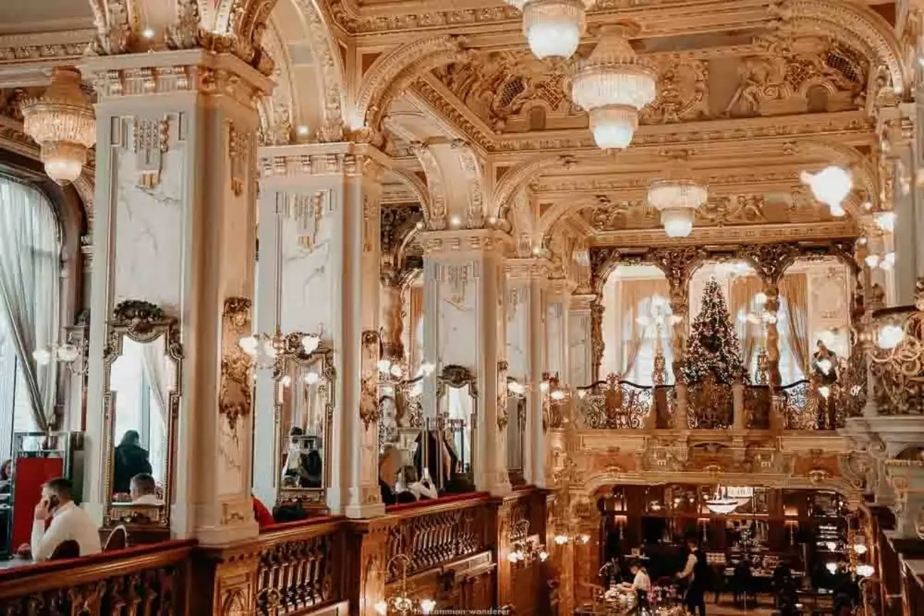 Conocido como “el café más hermoso del mundo”, su interior palaciego lo convierte en fenómeno visual global.