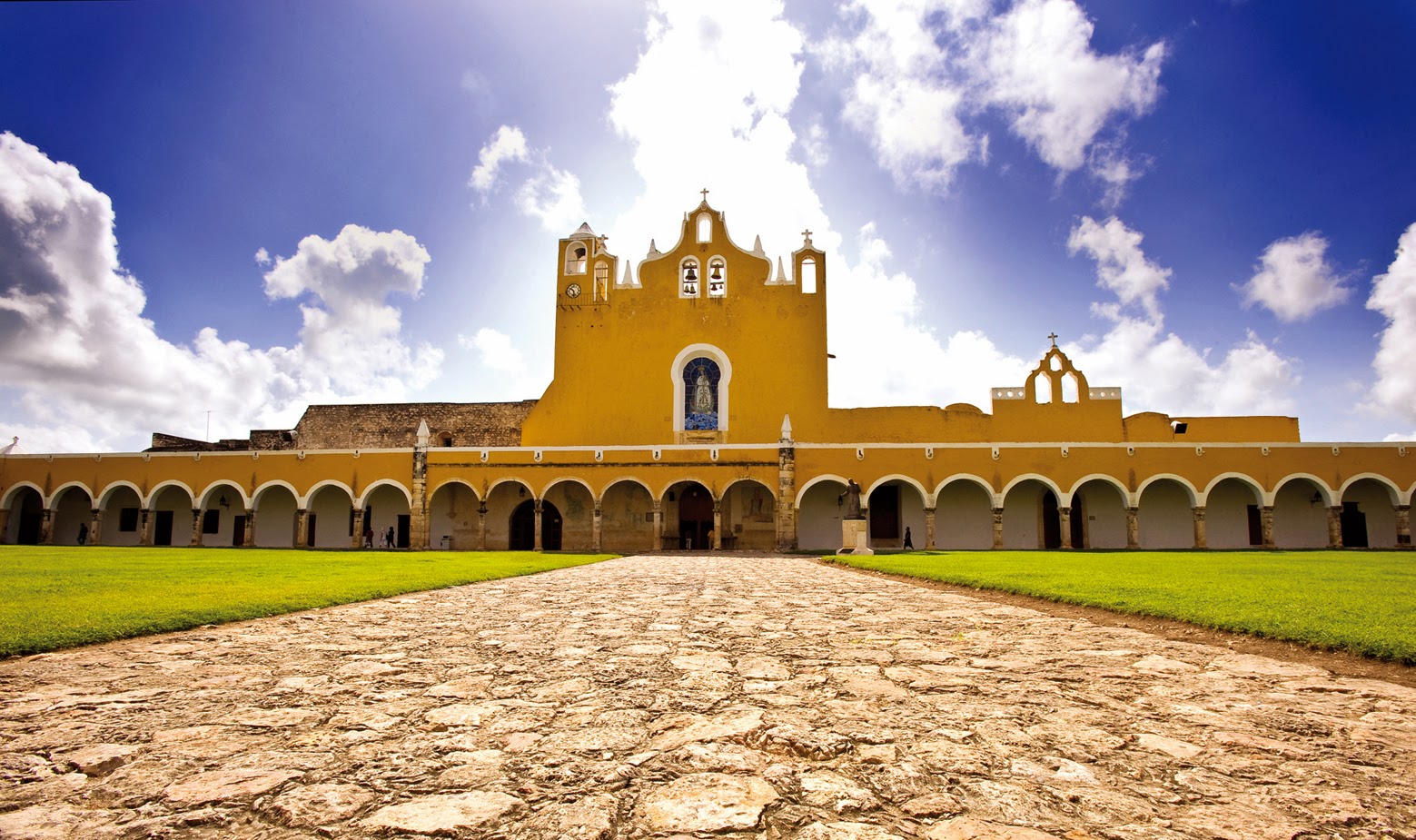 Por la tarde puedes llegar al Pueblo Mágico de Izamal, donde puedes apreciar el atardecer que pega suavemente sobre el Ex Convento de San Antonio de Padua con más de 450 años de haber sido construido y cuyo atrio es tan grande como el de San Pedro en Roma, luego puedes visitar Izamal de noche.