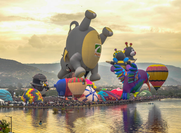 Hay una gran diversidad de formas convertidas en globos aerostáticos en las primeras horas de la mañana durante los cuatro días que dura el evento.